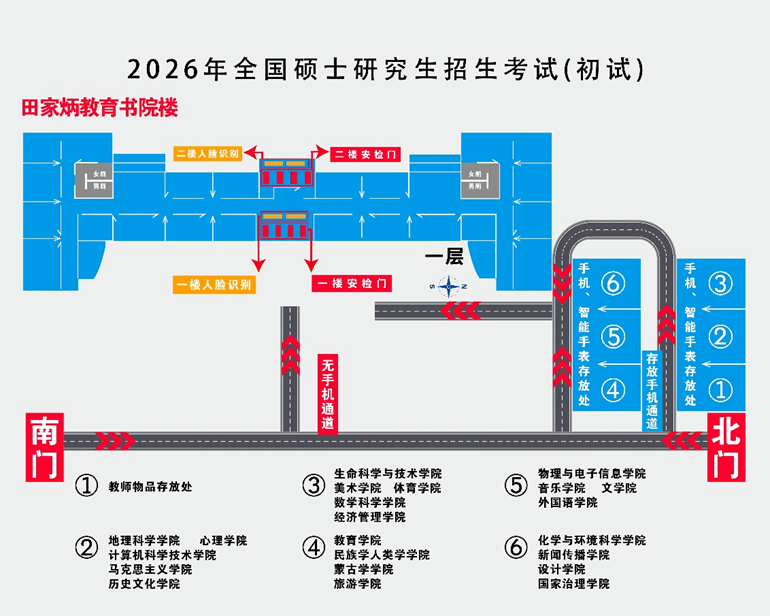 根据教育部和自治区统一要求,今年研究生入学考试入场采用“2+1安检模式(即所有考生入场前均须接受两次人工安检和一次智能安检门安检)。为确保考生顺利进入考场,请考生务必提前熟悉考场位置及各检测环节要求。